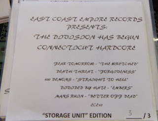A few weeks ago someone traded in a test press version of the “The Division Has Begun” compilation on East Coast Empire Records. This is an amazing piece of Connecticut’s hardcore history featuring five of the most important bands from the late 90’s; 100 Demons, Death Threat, Fear Tomorrow, Mans Ruin, & Divided By Hate. ECER was also the best hardcore label in CT hands down. The test pressing info was unknown so I contacted Dave Duncan, owner of ECER. He said that there are 20 rejected & 20 accepted tests. It turns out, he still had some ECER stock in storage as well. Which I happily bought off him!